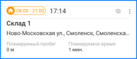 Если нажать на точку маршрута (склад или заявку), открывается окно со следующими строками: