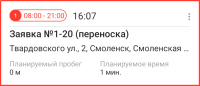 — показать весь маршрут.Устройства на платформах Android и iOS определяют местоположение по-разному: для Android показывается местоположение объекта, на который назначен водитель, для iOS — местоположение устройства, с которого выполнен вход в приложение.