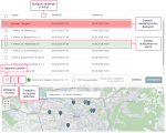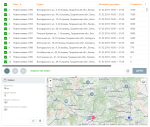 Информация, представленная в таблице, визуализируется на карте (при нажатии на строку элемента карта центрируется на выбранном элементе; при выставлении флага карта центрируется таким образом, чтобы все элементы с выставленным флагом попадали в поле видимости). Нажмите на